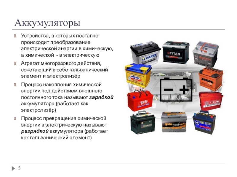 Презентация, доклад по химии на тему: Химические источники тока. Электролиз