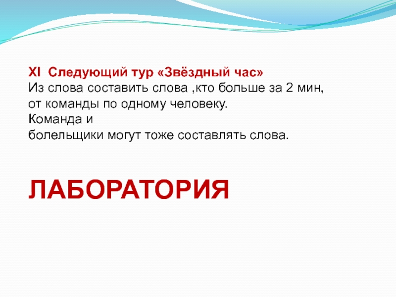 Слайд 10ΧI Следующий тур «Звёздный час»