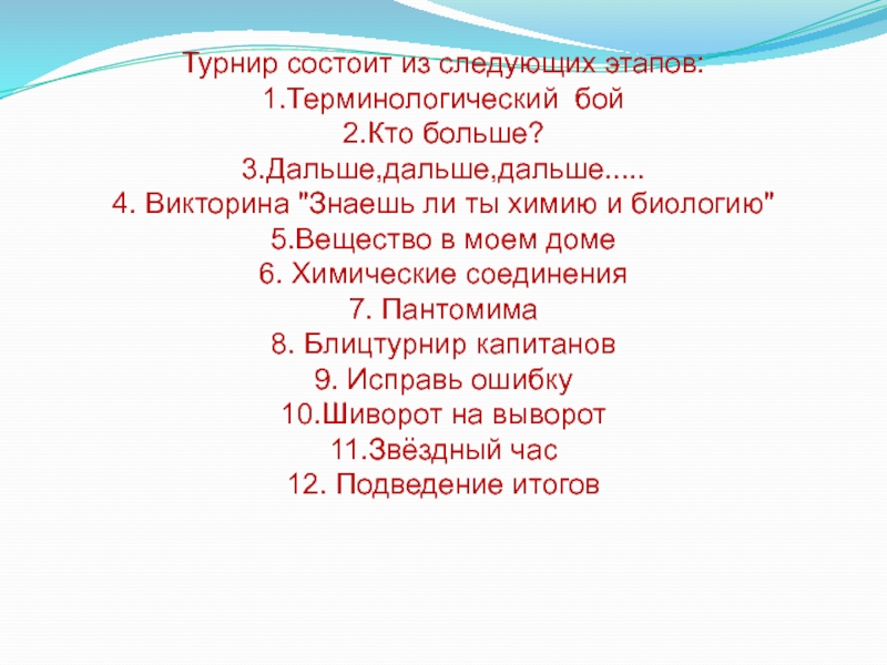 Слайд 3Турнир состоит из следующих этапов:
