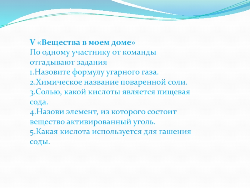 Слайд 7V «Вещества в моем доме»