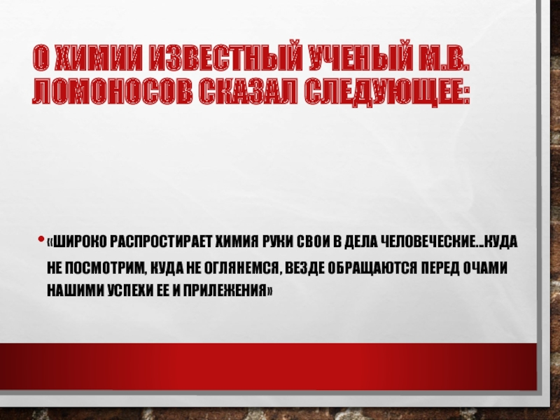 Слайд 3О химии известный ученый М.В. Ломоносов сказал следующее:
