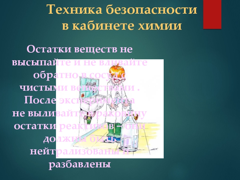 обратно в сосуд с чистыми веществами . После эксперимента не выливайте в раковину