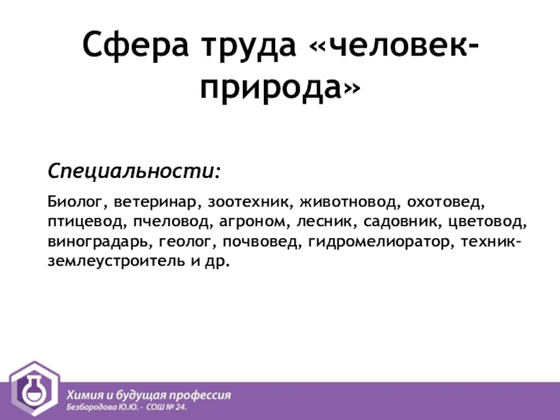 Биолог, ветеринар, зоотехник, животновод, охотовед, птицевод, пчеловод, агроном, лесник,