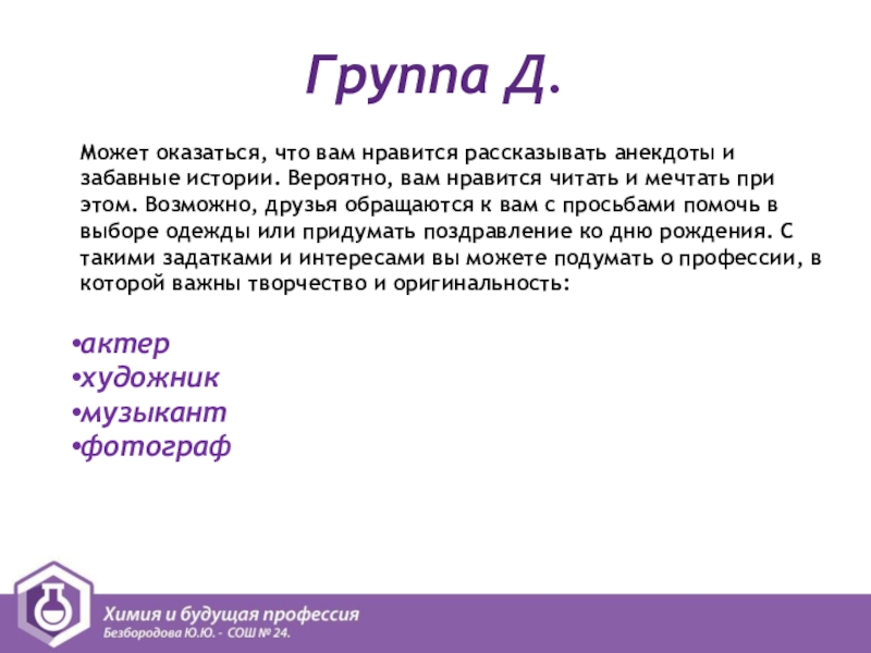 Слайд 28Может оказаться, что вам нравится рассказывать анекдоты и забавные истории. Вероятно,