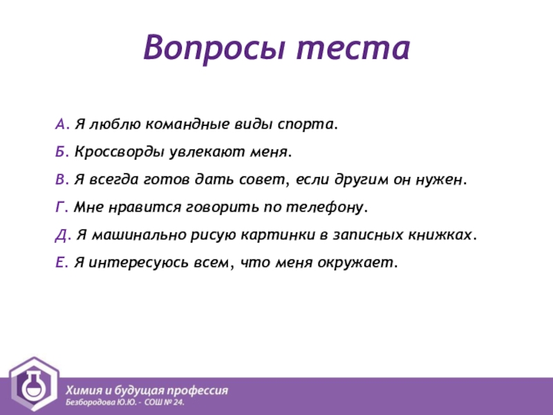 Может быть ,друзья обращаются к вам за помощью на лабораторных занятиях или одалживают ваши конспекты, готовясь к экзамену. Вам может нравиться вести спортивную статистику, играть в шашки или шахматы. С такими интересами вам имеет смысл обратить внимание на профессии, требующие определенных организаторских способностей :