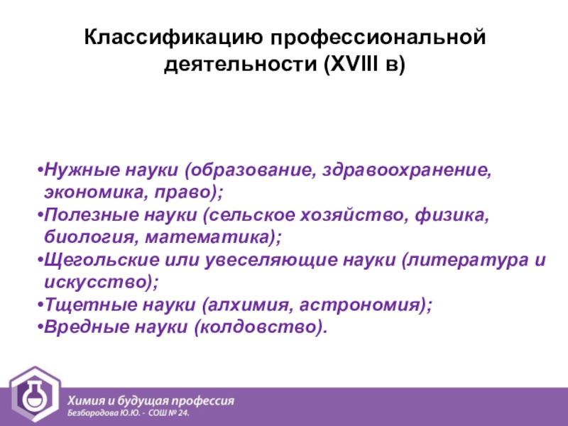 Слайд 5Классификацию профессиональной деятельности (XVIII в)