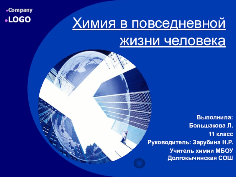 Химия в повседневной жизни человекаВыполнила:Большакова Л.11 классРуководитель: Зарубина Н.Р.Учитель химии МБОУ Долгокычинская СОШ