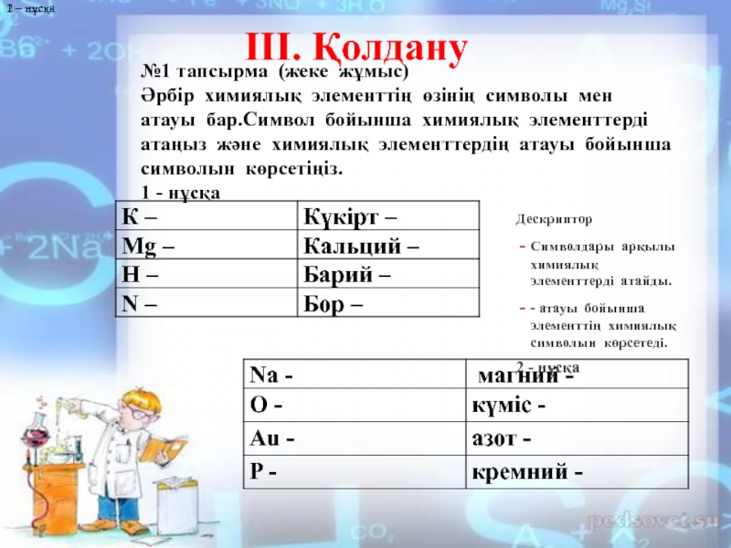 Символдары арқылы химиялық элементтерді атайды.
