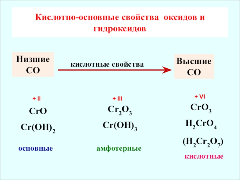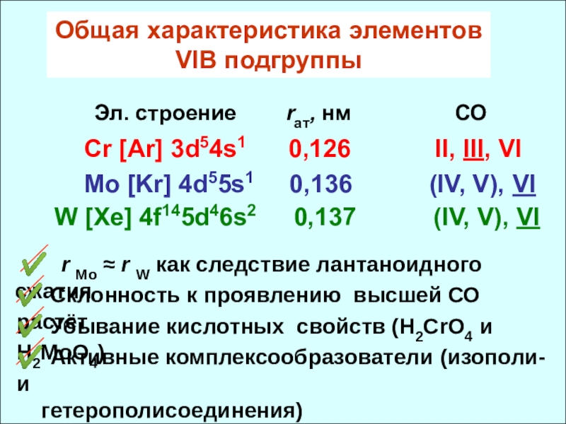 ✔ Убывание кислотных свойств (H2CrO4 и H2MoO4)
