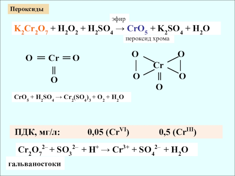 K2Cr2O7 + H2O2 + H2SO4 → CrO5 + K2SO4 + H2O