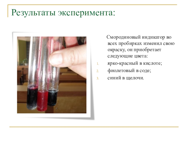 Смородиновый индикатор во всех пробирках изменил
