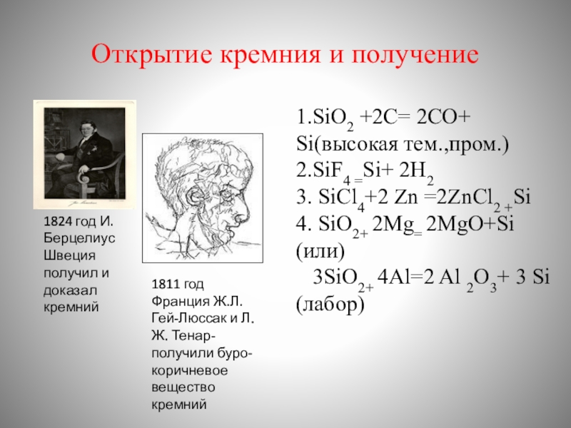 1824 год И. Берцелиус Швеция получил и доказал кремний