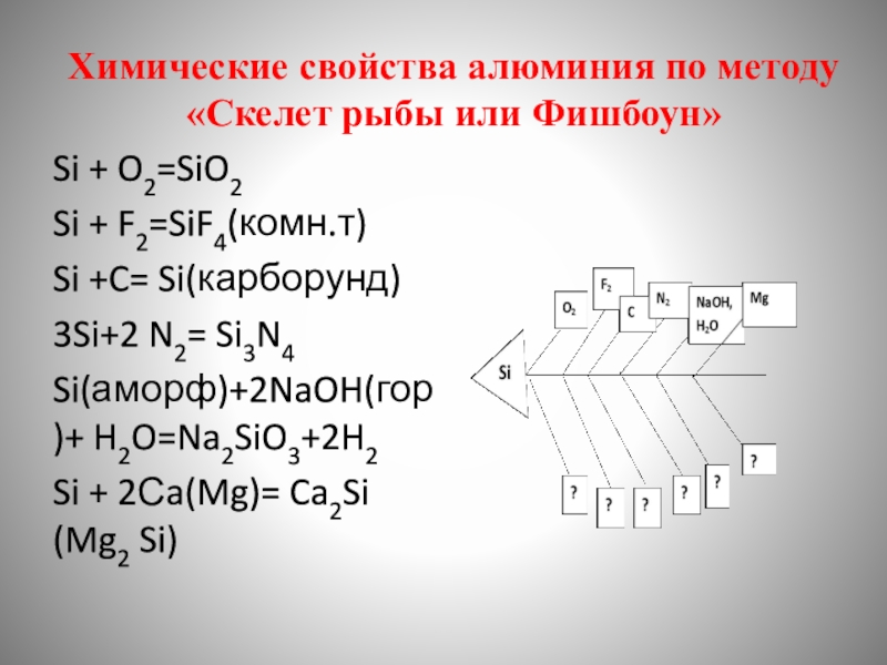 Вопрос№4. Химические свойства кремния, используя метод «Фишбоун»
