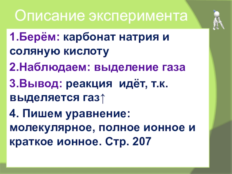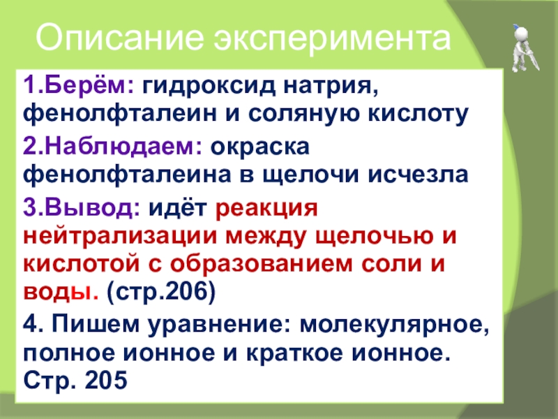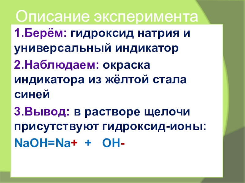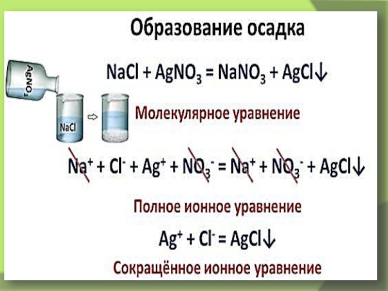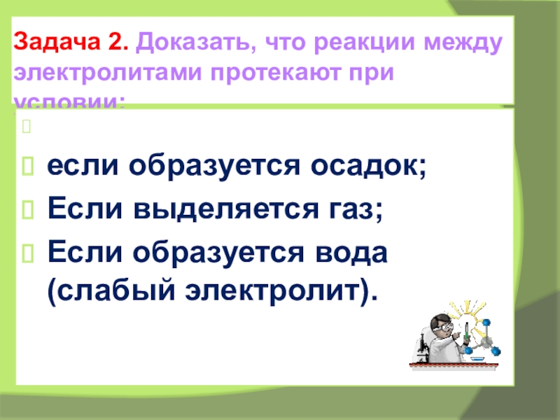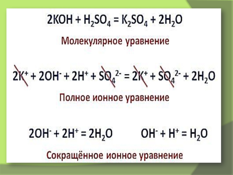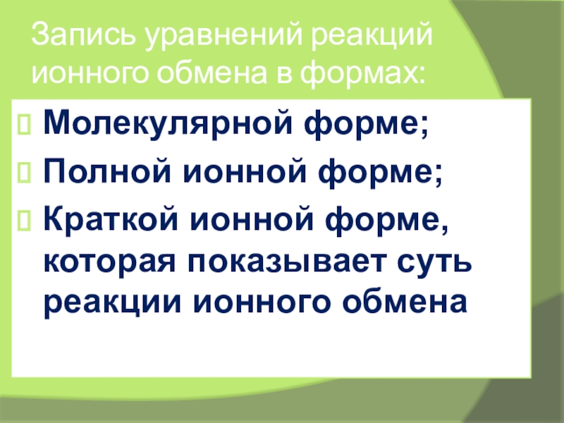 Запишите: реакции ионного обмена идут до конца, если: а) ↓, б)↑, в) образуется слабый электролит, например вода. (правило Бертолле)