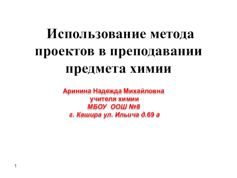 ИСПОЛЬЗОВАНИЕ МЕТОДА ПРОЕКТОВ В ПРЕПОДАВАНИИ ПРЕДМЕТА «ХИМИЯ»