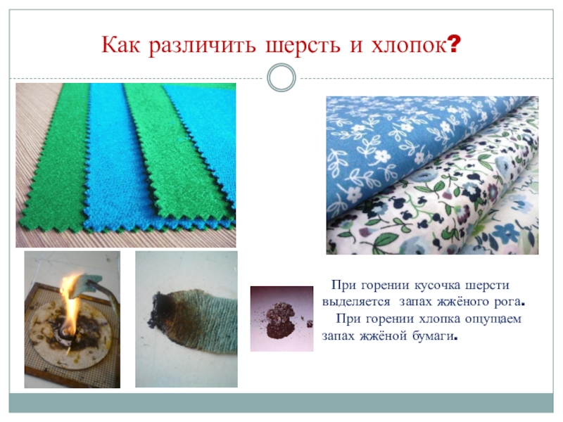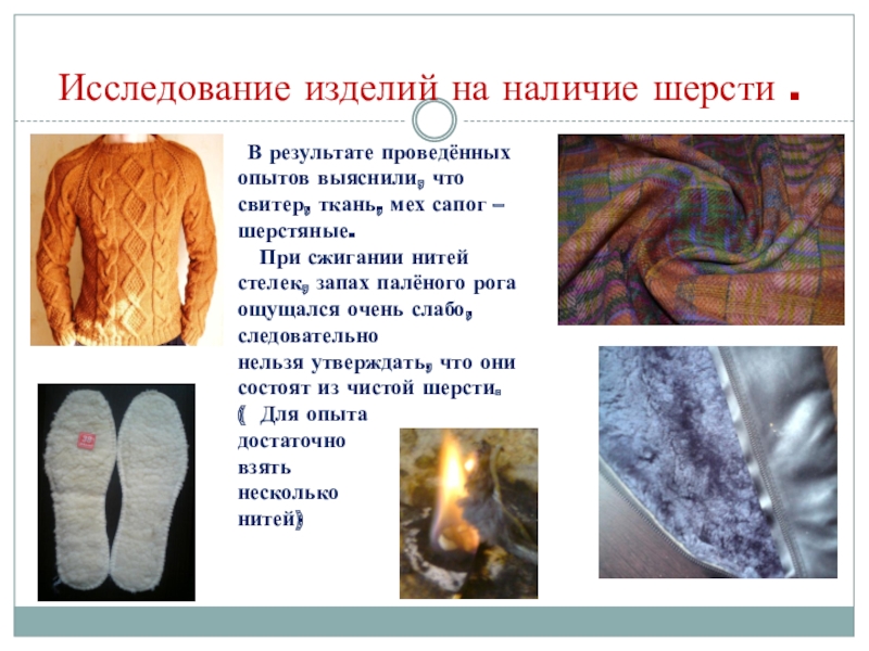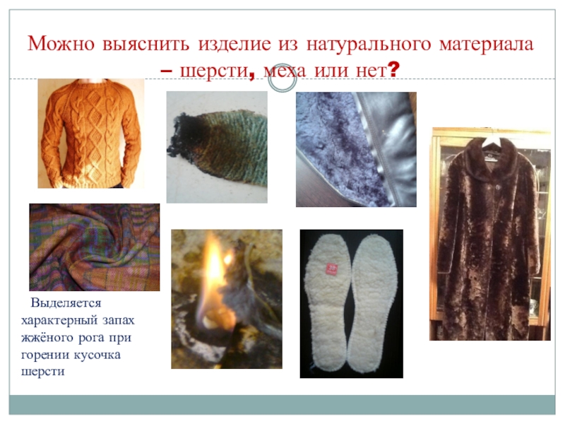 Слайд 35Можно выяснить изделие из натурального материала – шерсти, меха или нет?
