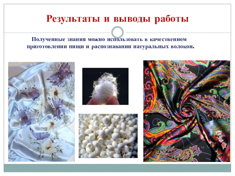Полученные знания можно использовать в качественном приготовлении пищи и распознавании натуральных волокон, в оказании первой помощи при отравлении.