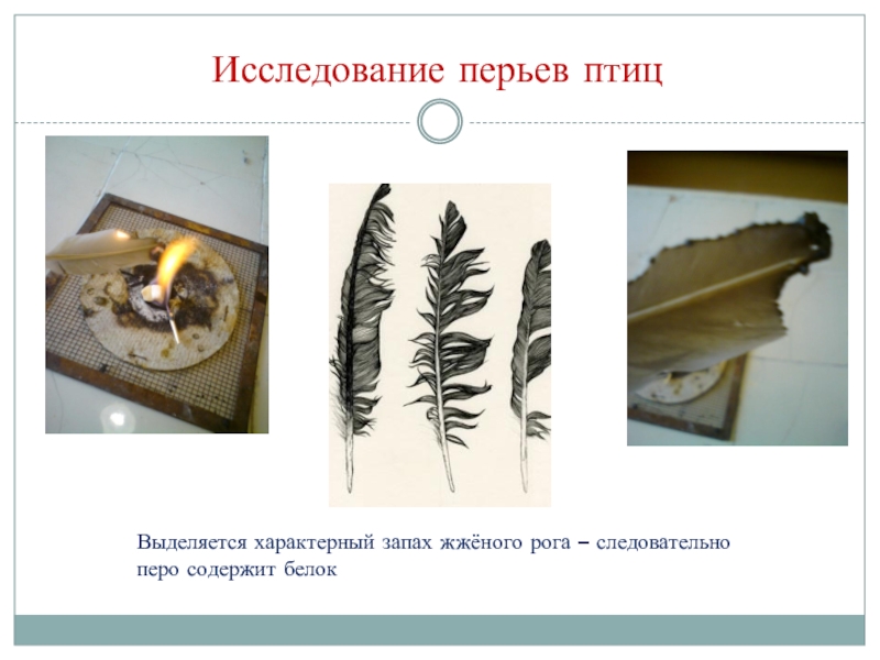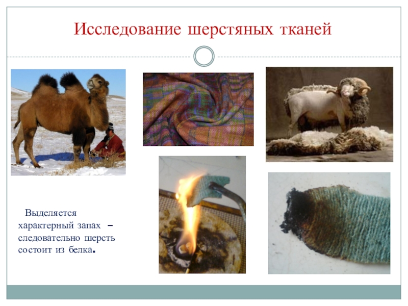 в огне, потом кусочек рога, потом кусочек шерсти. Выделяется характерный запах – следовательно рога и копыта, шерсть животных содержат белок.