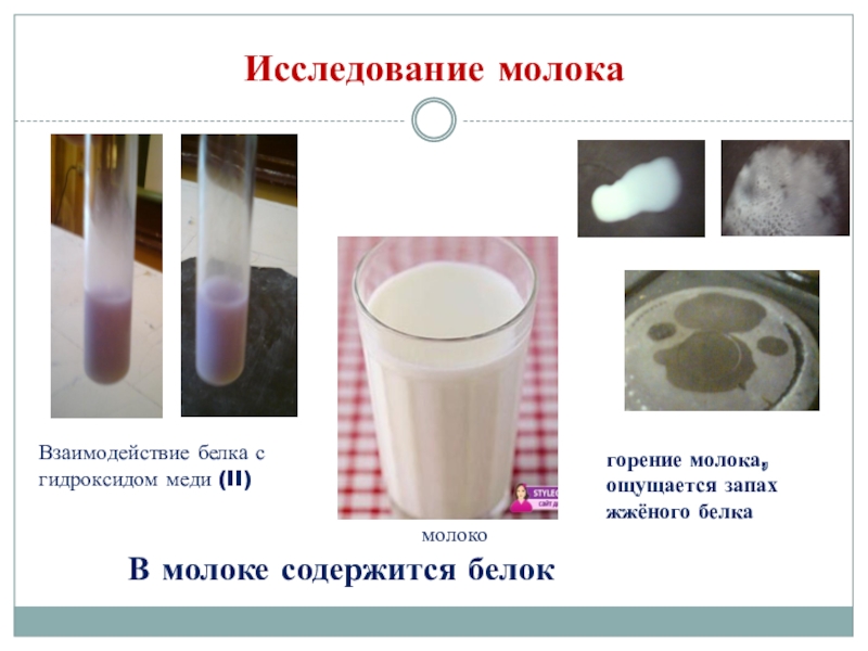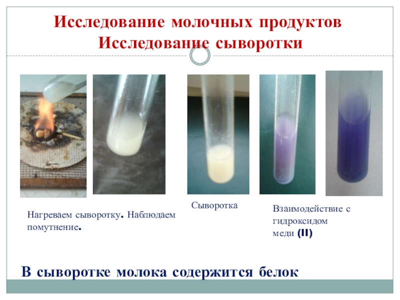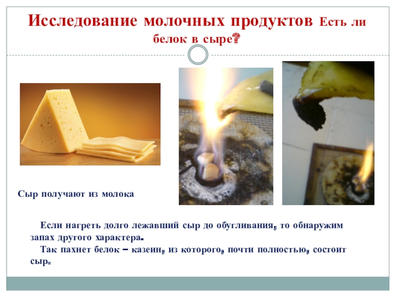 Слайд 24Исследование молочных продуктов Есть ли белок в сыре?