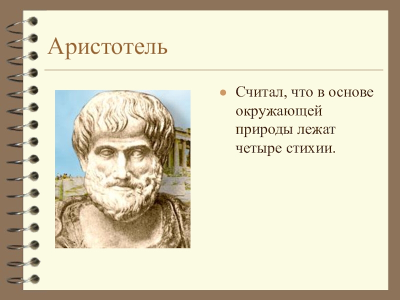 Считал, что в основе окружающей природы лежат четыре стихии.