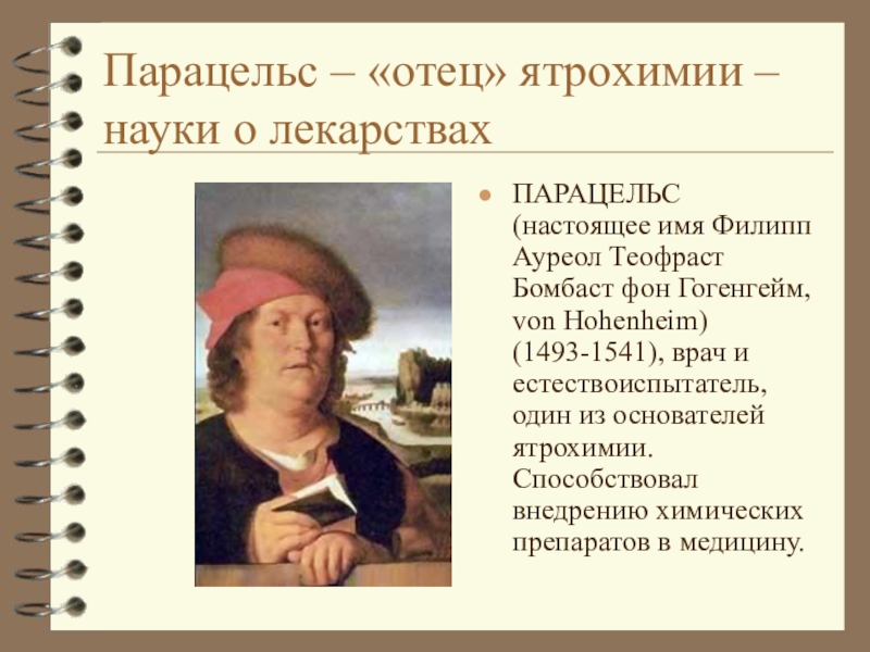 Слайд 19Парацельс – «отец» ятрохимии – науки о лекарствах