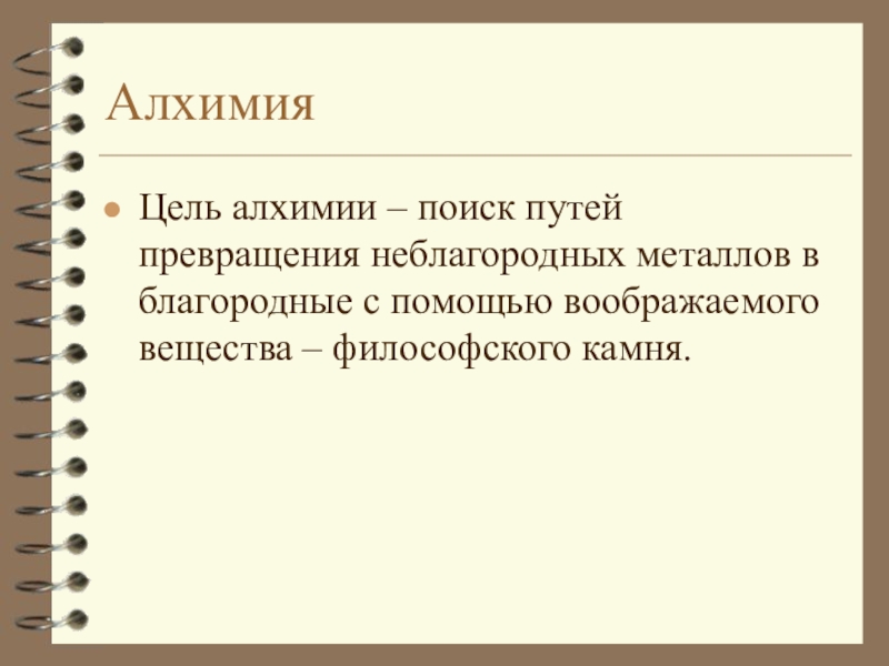 Цель алхимии – поиск путей превращения неблагородных металлов в благородные с