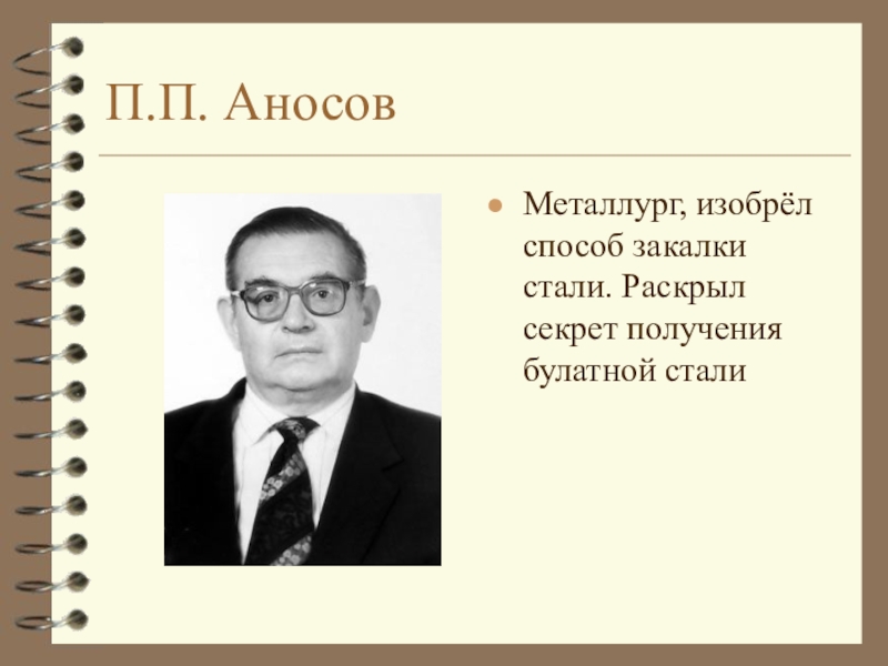Металлург, изобрёл способ закалки стали. Раскрыл секрет получения булатной стали