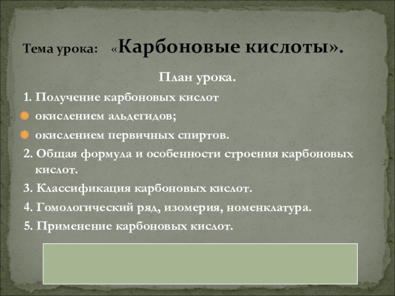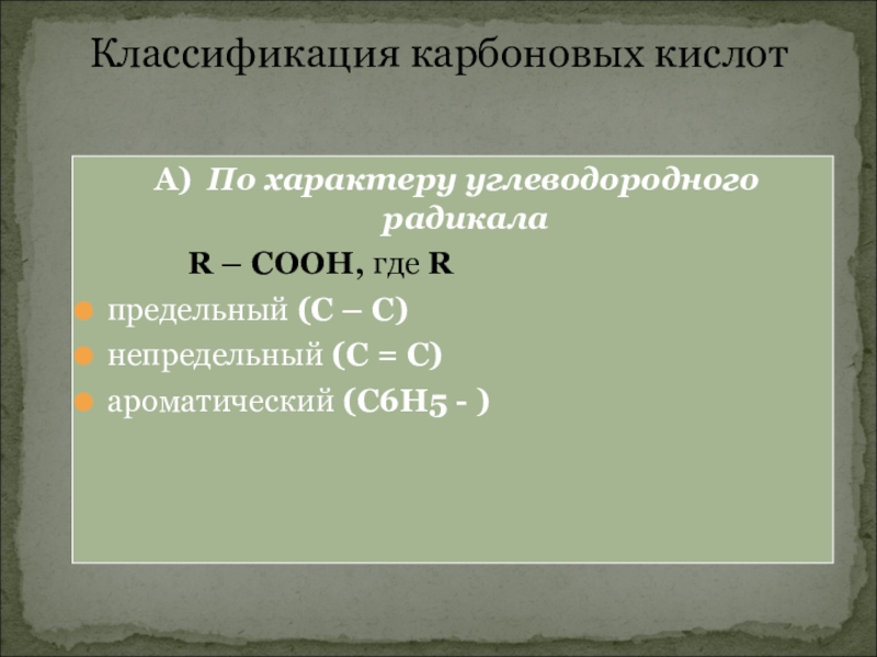 Классификация карбоновых кислот по характеру углеводородного радикала