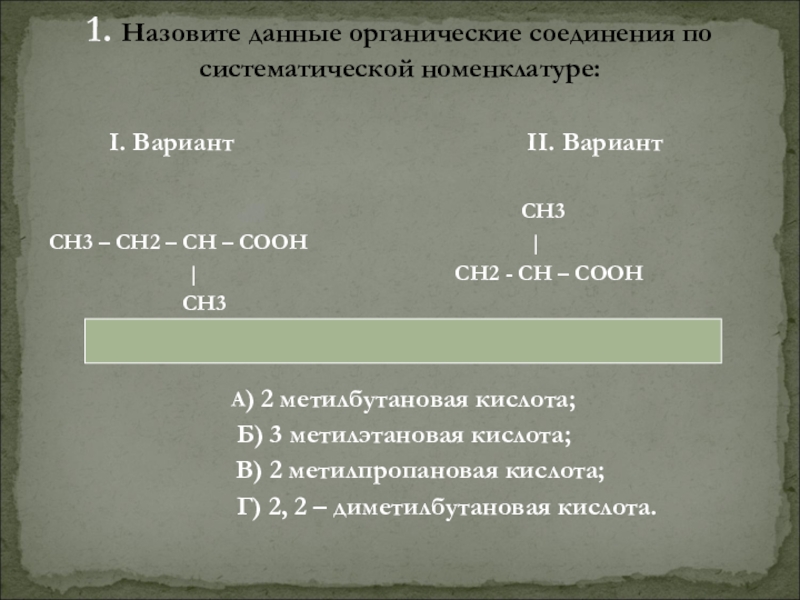 1. Назовите данные органические соединения по систематической номенклатуре: