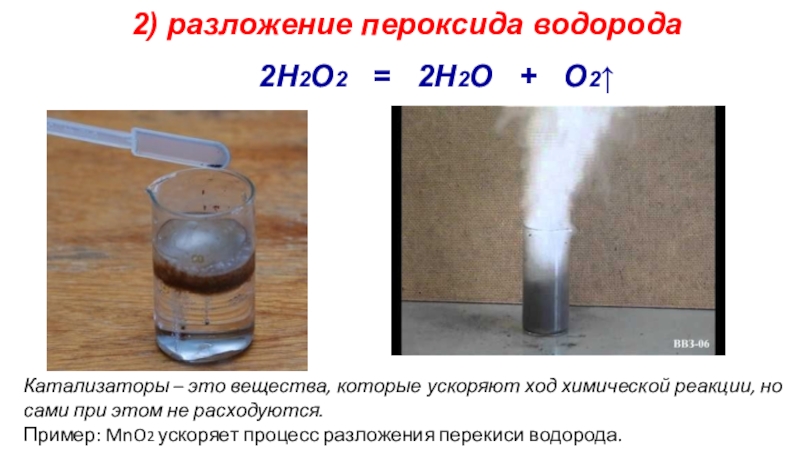Пример: MnO2 ускоряет процесс разложения перекиси водорода.