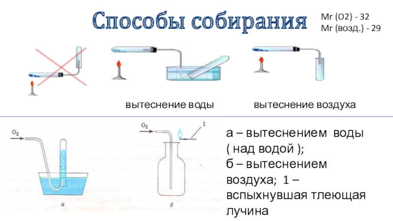 а – вытеснением воды ( над водой ); б – вытеснением воздуха; 1 – вспыхнувшая тлеющая лучина