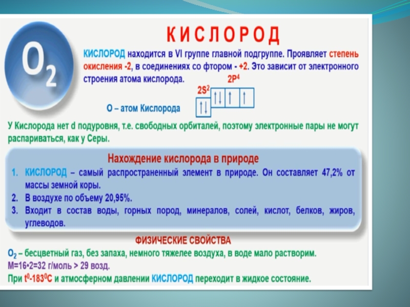 Знать особенности электронного строения кислорода ;