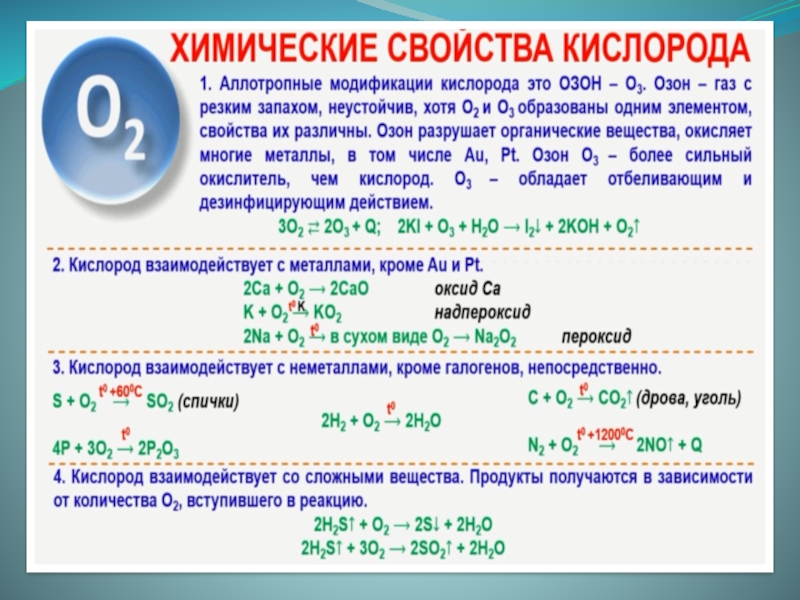 Знать химические свойства кислорода;