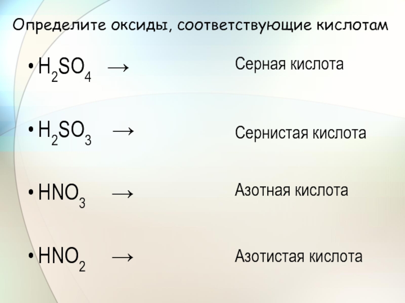 Н2SО3 , Н 2СО3, Н2S, НI, Н2SiО3