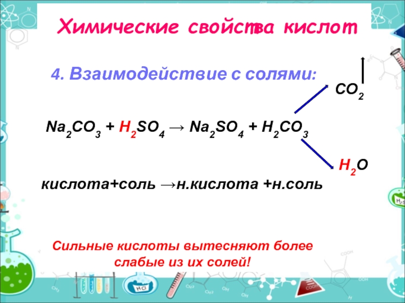 кислота+соль →н.кислота +н.соль