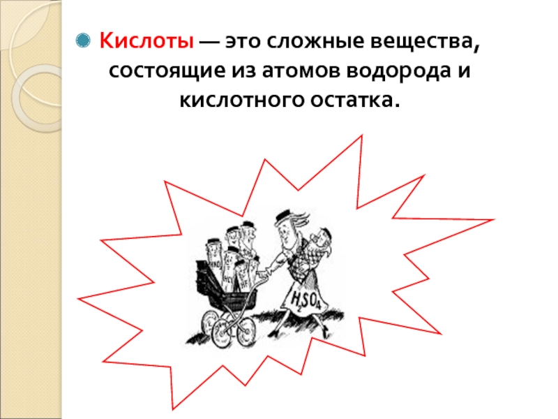 Слайд 5Кислоты — это сложные вещества, состоящие из атомов водорода и кислотного