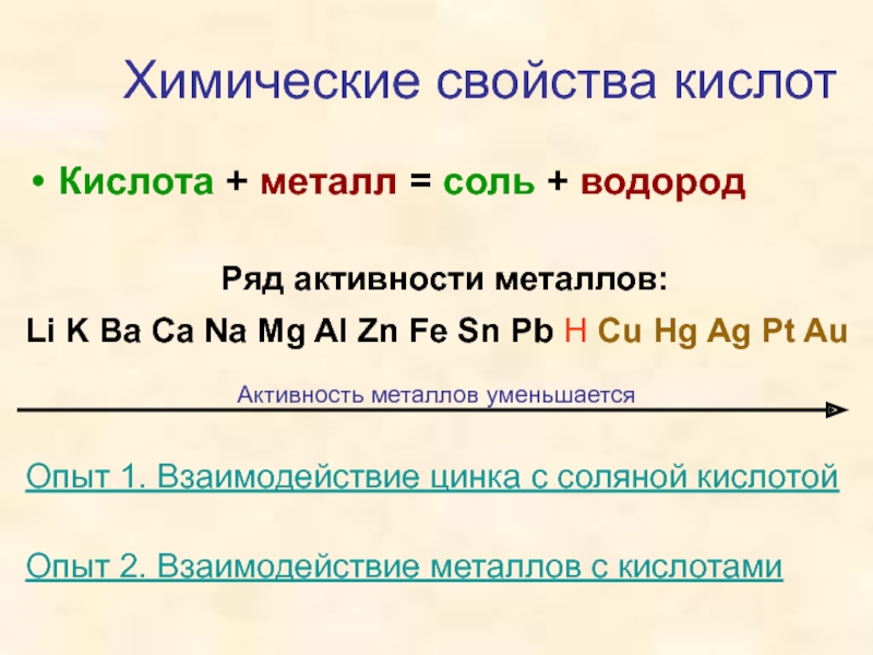 Опыт 1. Взаимодействие цинка с соляной кислотой