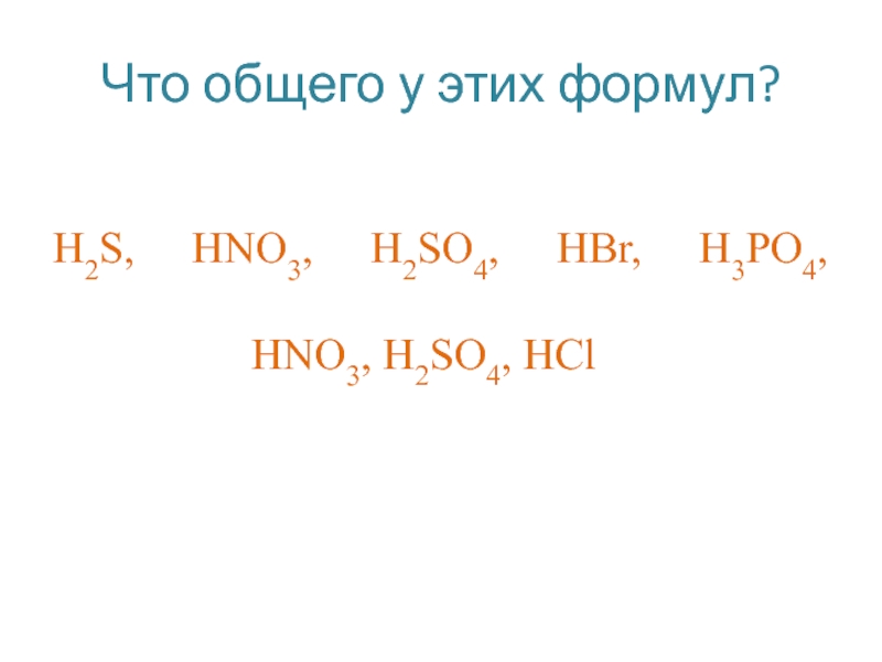 Что общего у этих формул?     H2S, HNO3, H2SO4, HBr, H3PO4,