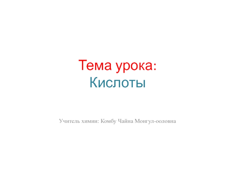 Тема урока: КислотыУчитель химии: Комбу Чайна Монгул-ооловна