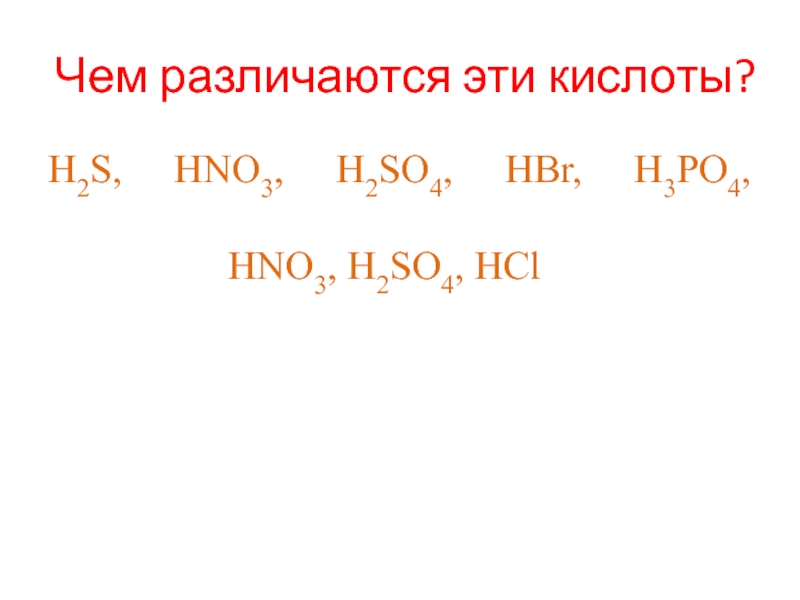 Чем различаются эти кислоты?H2S, HNO3, H2SO4, HBr, H3PO4,