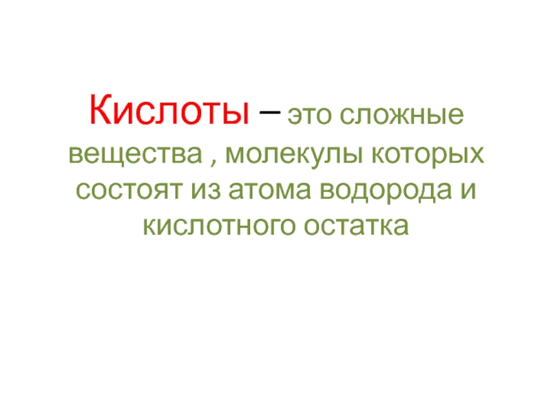 Слайд 5Кислоты – это сложные вещества , молекулы которых состоят из атома