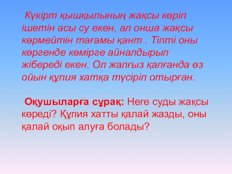 Оқушыларға сұрақ: Неге суды жақсы көреді? Құпия хатты қалай жазды, оны қалай оқып алуға болады?