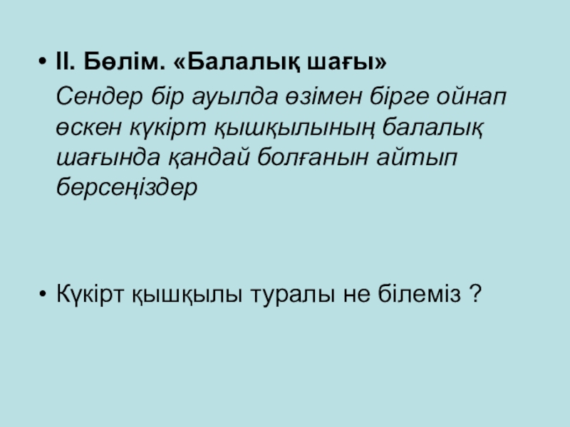 Слайд 7ІІ. Бөлім. «Балалық шағы»