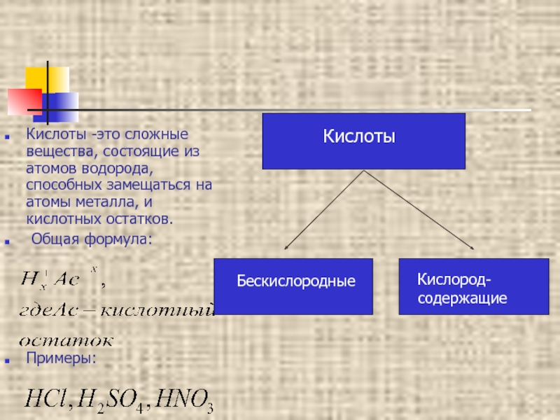 Кислоты -это сложные вещества, состоящие из атомов водорода, способных