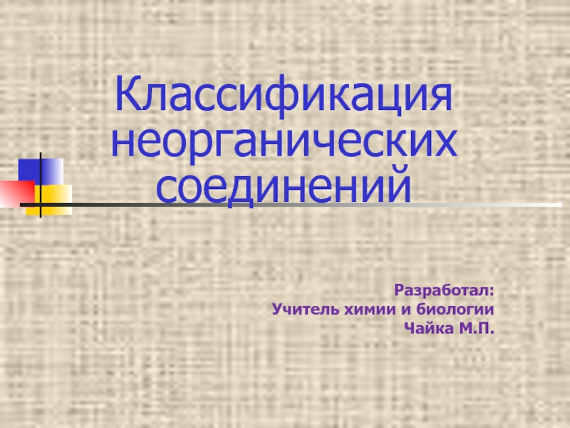 Разработал: Учитель химии и биологии Чайка М.П. Классификация неорганических  соединений