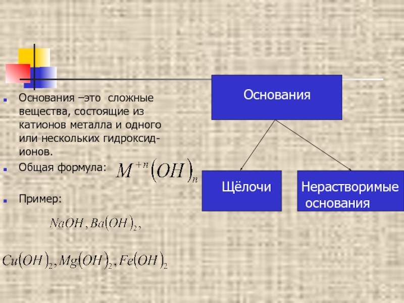 Основания –это сложные вещества, состоящие из катионов металла и одного или