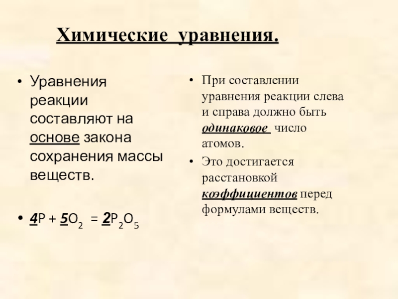 При составлении уравнения реакции слева и справа должно быть одинаковое число атомов.