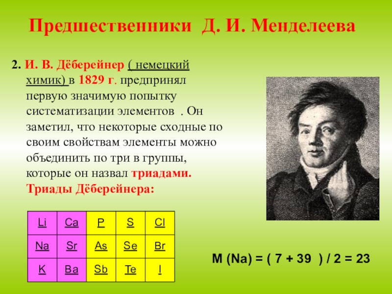 М (Na) = ( 7 + 39 ) / 2 = 23
