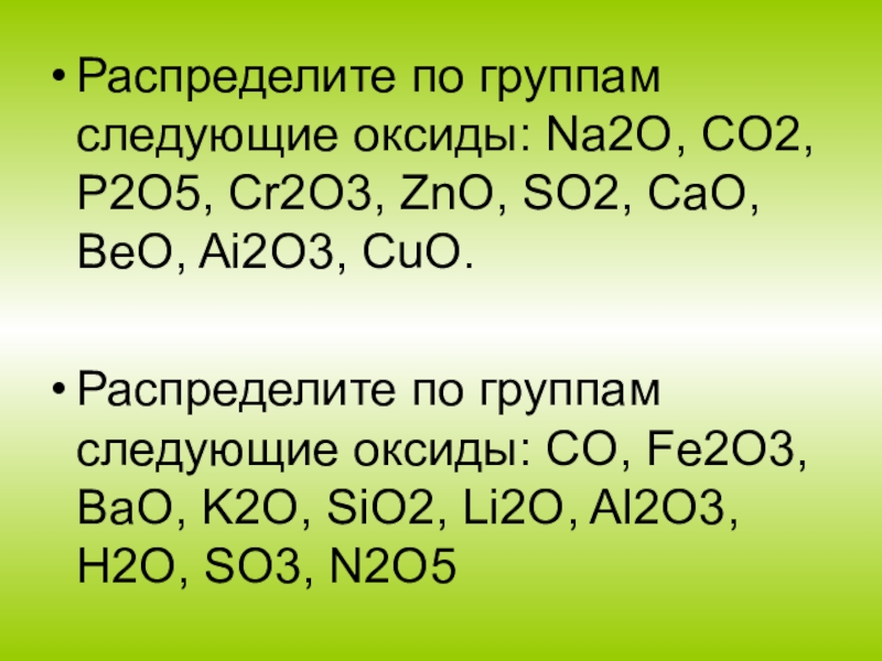 Соли кислородсодержащих кислот Кислородсодержащие кислоты