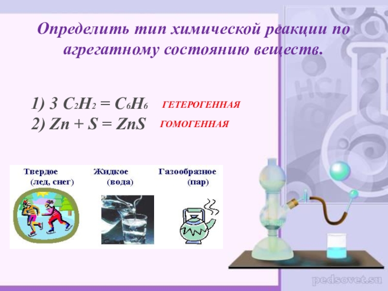 Слайд 23Определить тип химической реакции по агрегатному состоянию веществ.